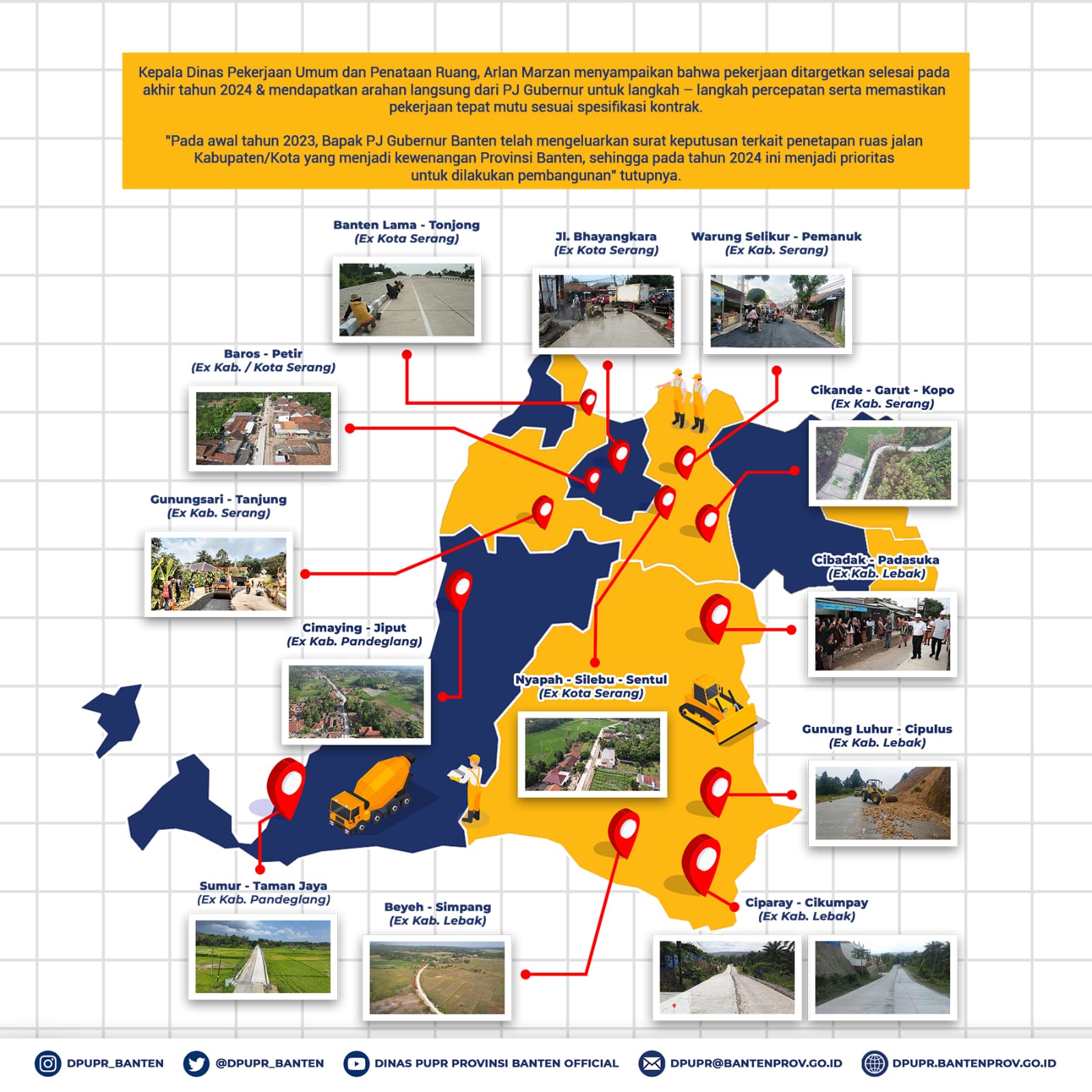 Dinas Pekerjaan Umum dan Penataan Ruang (PUPR) Banten terus berbenah membangun infrastruktur jalan. Setidaknya terdapat 13 ruas jalan ex-kabupaten dan kota yang mulai dibangun.