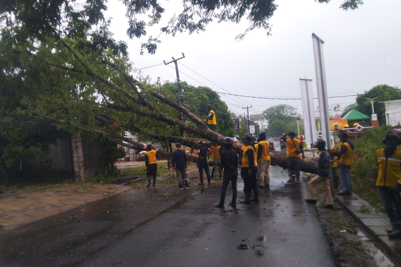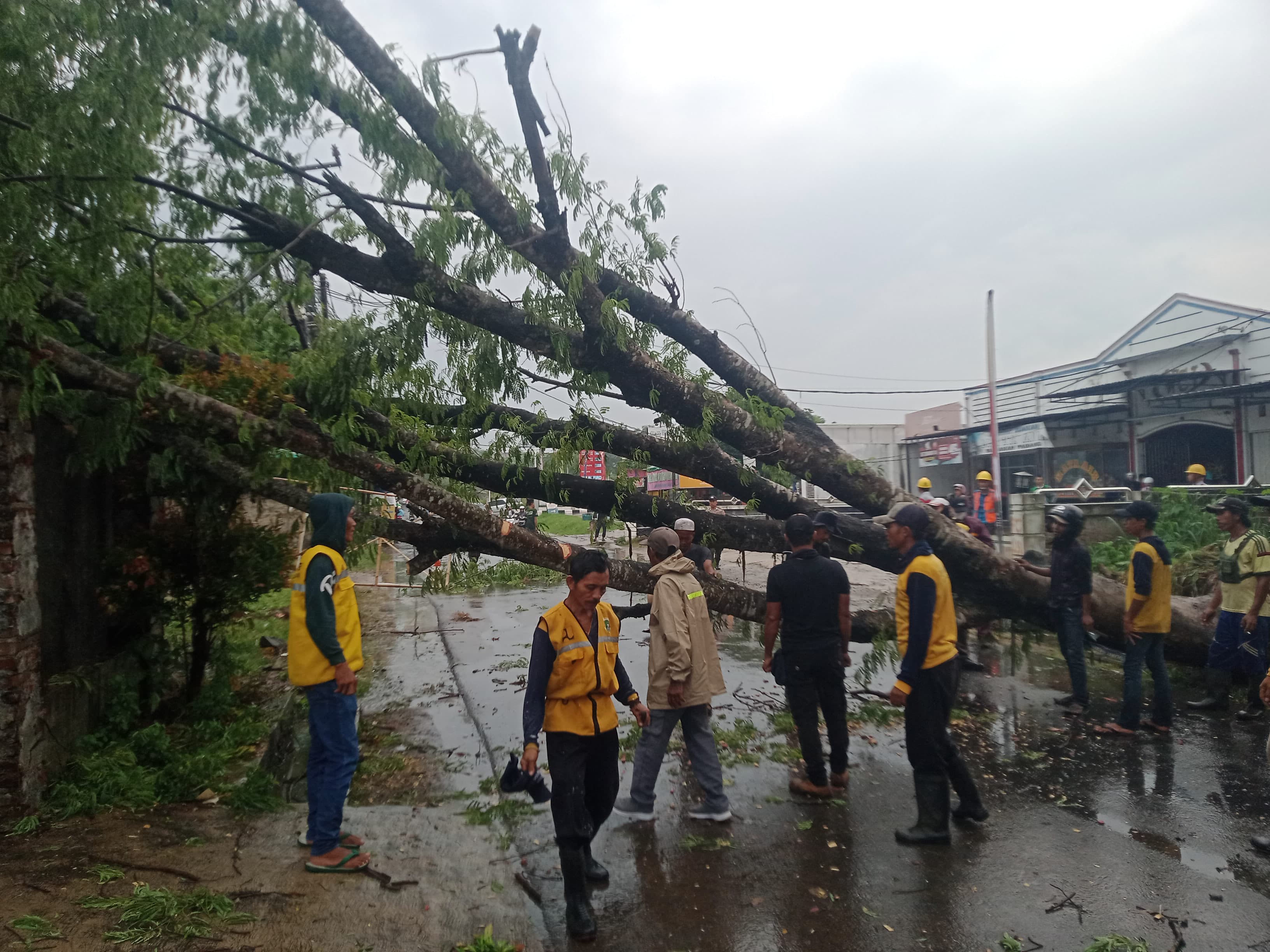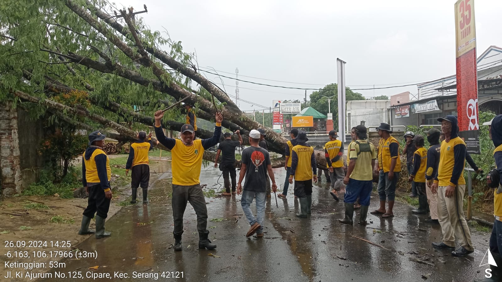 Penanganan Pohon Tumbang oleh Tim Teknis UPTD PJJ Seragon di Ruang Jalan Serang - Petir (Boru)
